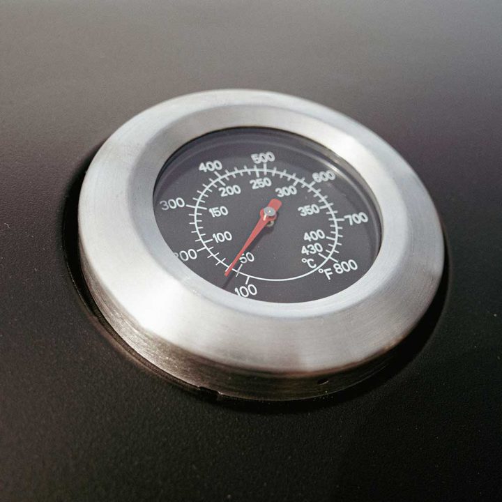Shut the large cooking hood and your grill can be ready to cook at 500F within 5 minutes! Keep an eye on the temperatures with the Stainless Steel Integrated Thermometer