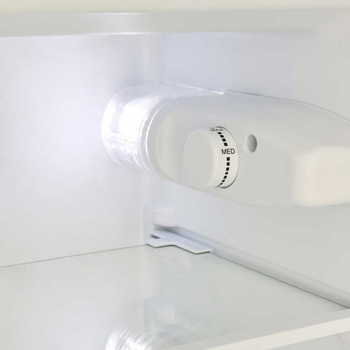 Designed to fit neatly under your worktop, this fridge with a 12L four-star rated ice box gives you both chilled and frozen storage without taking up valuable space. Inside, you’ll find two removable glass shelves, a vegetable crisper drawer, and three door racks for flexible organisation. The reversible door and height-adjustable feet make it adaptable to any kitchen layout, while LED lighting ensures a clear view of your items.