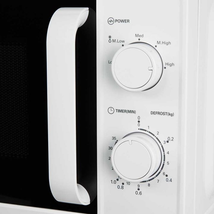 Compact yet spacious, this 800W microwave features a 20L capacity and a large 25cm turntable to fit family-sized plates. Intuitive controls make heating, cooking, and defrosting simple, while the bright white finish ties perfectly with the rest of your kitchen appliances.