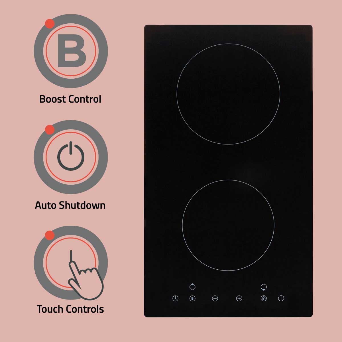 - Domino Induction Hob with Touch Controls means a completely flat surface that's easy to clean!