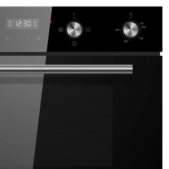 This Double Oven is brought to you by Cookology, combining the high-end features, quality materials and leading performance that you expect with a Cookology appliance. The CDO720BK is classed as “Built-under” so it fits a standard double oven cavity under your kitchen worktop. Finished in Black Glass, with a touch control panel and silver dials, the oven looks incredibly stylish and sleek and won’t look out of place in a modern, high class kitchen, perhaps with a matching Cookology black glass gas or ceramic hob. Please make sure your fitter looks at the technical diagram before placing your order to make sure it will fit, especially if placing an induction hob over the top as they are deeper.