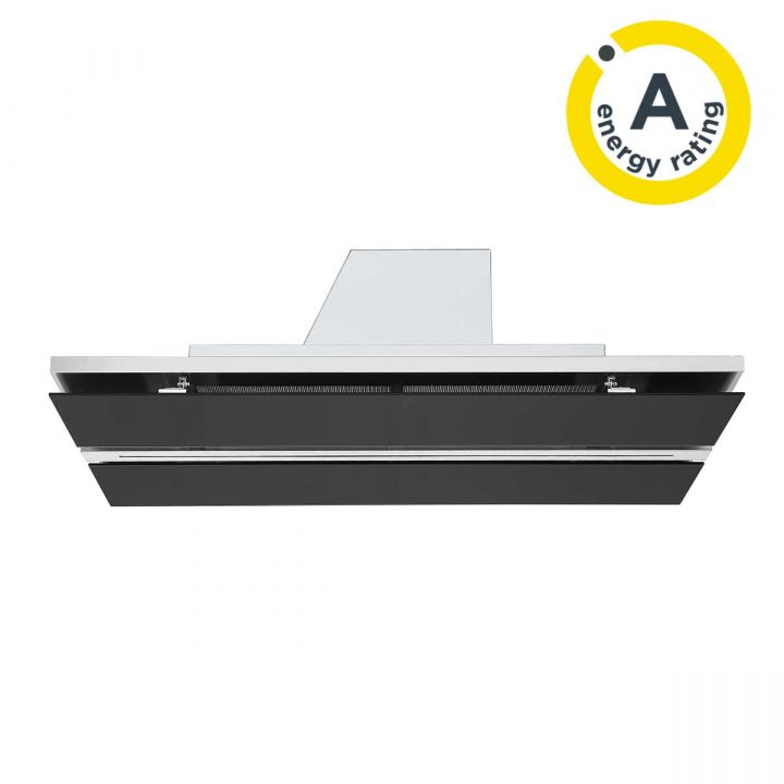 A Energy Rated 100cm Ceiling Island Cooker Hood – Black Glass