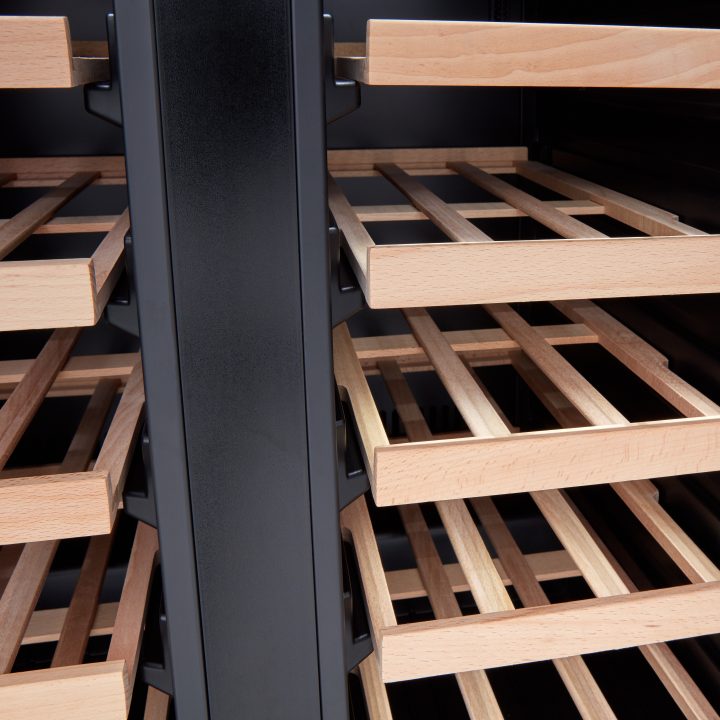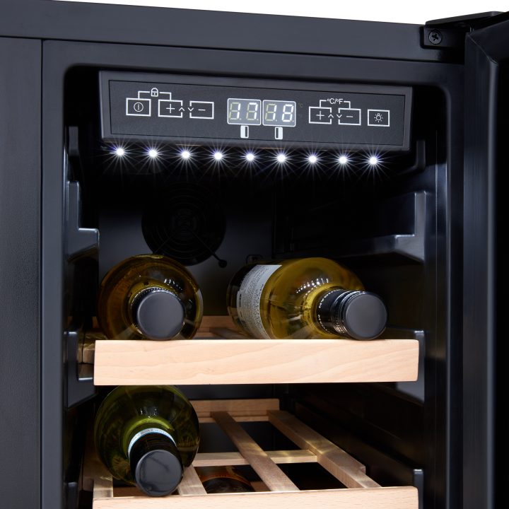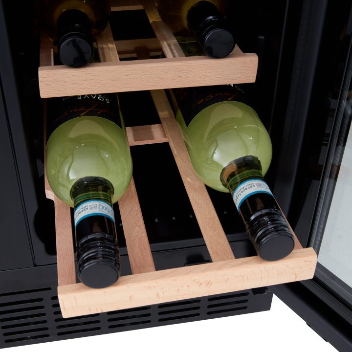 - 11x Beech wood shelves and the cooling fan work together to help prevent condensation on the glass or bottles