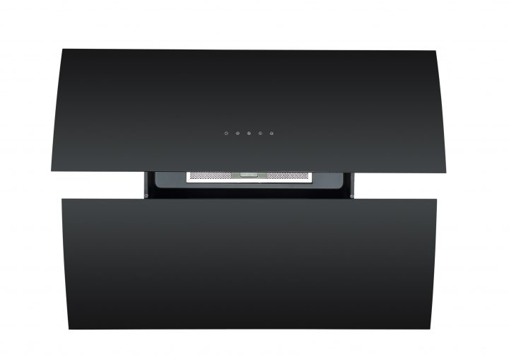 Cookology 90cm Extractor Fan with Black Curved Glass Angled Front. The PREM900BK is an Arch Cooker Hood that when not in use is a beautiful Curved Arch of Black Glass that opens up with an Automatic Opening Mechanism when you want it to start extracting. This designer extractor has no logos or brands and looks and feels like a high quality Cooker Hood on a par in terms of looks, materials and performance, with much more expensive appliances several times the price. This Premium Cooker Hood features LED spot lights that are brighter and more efficient than Halogen ones, bathing your kitchen in Brilliant light that dramatically improves light levels right where you need it most in the kitchen. This along with the Sleek Black Glass Front, makes the PREM900BK especially suitable for a modern kitchen, over a 90cm Range Cooker or Hob. The Primary function of an Extractor Fan is to Extract Smells, Smoke and Greasy air from your Kitchen – naturally then having smooth touch controls instead of buttons means less places where grime can build up. The grease filter is easily removable and washable. The touch controls also add functions that make this Cooker hood more useful such as a Timer that automatically switches off the Fan so you can leave the kitchen without worrying about coming back later to switch it off.