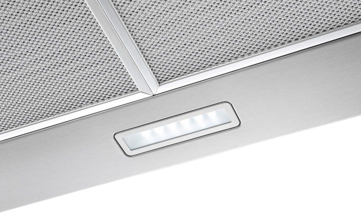 The CCHIM60 includes a 2W LED light, providing clear illumination of your cooking area with an energy efficiency class of A for lighting. Two aluminium grease filters are included as standard, and optional CF130 carbon filters can be added for recirculation use, making this cooker hood versatile for different kitchen setups.
