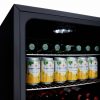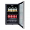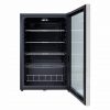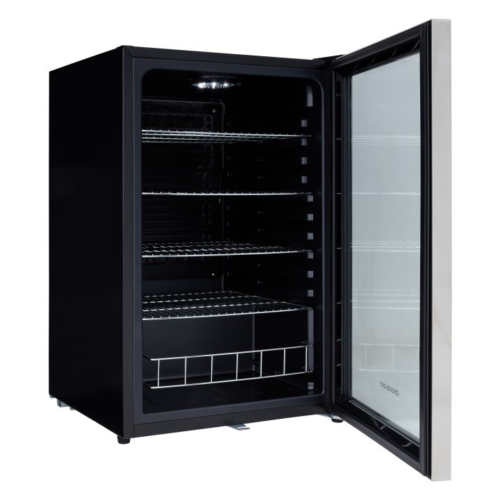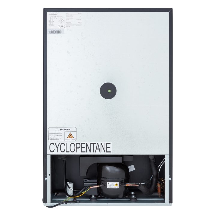 The is an undercounter drinks fridge that can be left freestanding or slid underneath your bar or kitchen worktop. You get 115 litres of cooling capacity, which is why we have included a lock so you can control who can open the fridge, store plenty of beer and soft drinks ready for your next event! The glass door is reversible, so you can mount it to be left opening or right opening, depending on what is convenient, however the lock will only work when the door is right opening. The energy rating is A+ (2021 energy rating F), so it won’t cost you a lot in energy bills compared to many poorly rated wine coolers and noise level is just 39dB – basically whisper quiet.