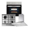 Cookology Fan Forced Oven, Gas Hob & 60cm Chimney Hood Pack – Stainless Steel