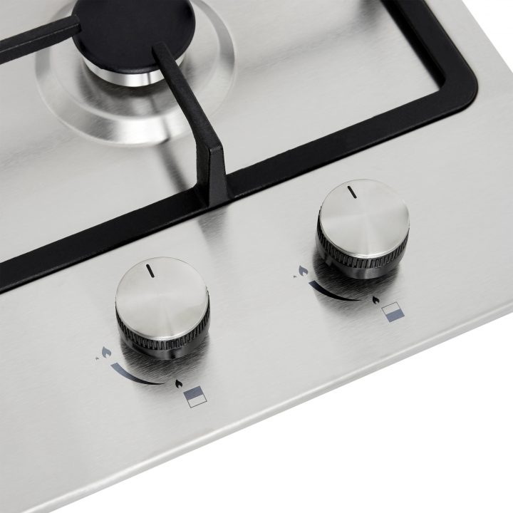 Cookology 30cm Built-in Domino Gas Hob in Stainless Steel with Cast-Iron Stands. With its Chunky Controls at the Front, Thick Cast-Iron Pan Supports and Quality Stainless Steel Finish, the GH309SS is a winner that will instantly being a level of Quality to your Kitchen – great if your looking for an inexpensive way to add value and impress potential tenants and buyers. Gas Hobs are preferred by Professional Chefs because they give you crucial responsiveness when cooking, for instance when a Pot starts to over boil or when you want to get a Pan searing hot in a flash. They also allow you to toss around ingredients by lifting the pan off the Hob without losing heat which is not possible with Electric Hobs. Naturally you don’t want to be using matches and burning your fingers when cooking on your new hob which is why you get Auto-Ignition with the GH309SS so all you have to do is twist the Rotary Controls and the Burners will Ignite. Each of the 2 burners comes fitted with an FFD / FSD (flame failure device / flame supervision device) – this ensures that if an over boiling pan or a sudden gust of wind were to extinguish a flame, the gas would shut off automatically. Not only is this a legal requirement in certain buildings, its genuinely a life saver.
