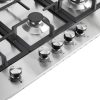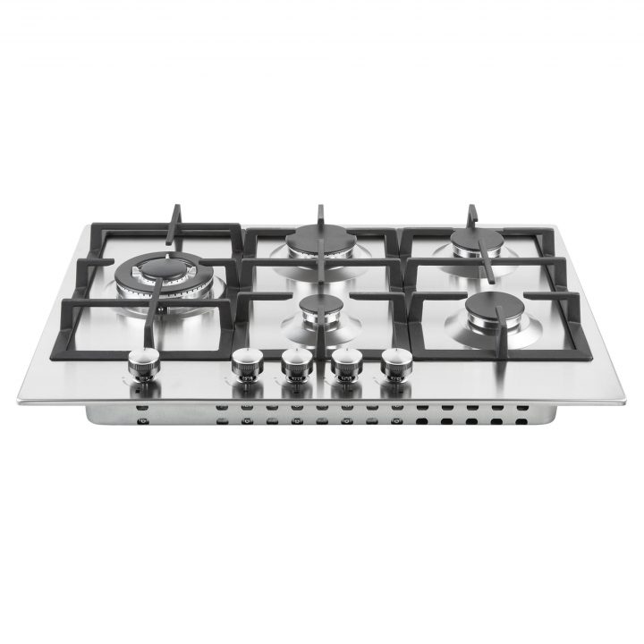 70cm Stainless Steel 5 Burner Gas Hob and Wok Burner with Cast Iron Supports