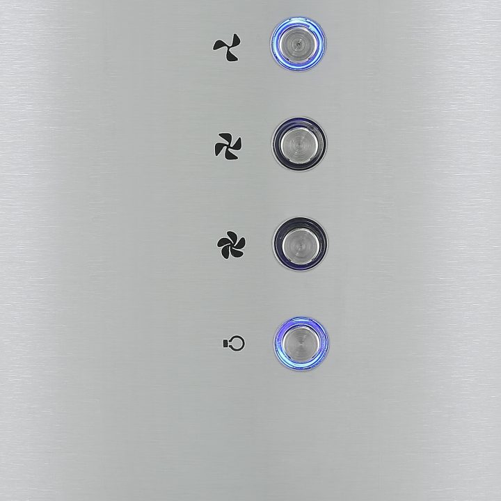 The highly efficient Energy Rating A++ is awarded for its low energy usage and noise. The island cooker hood runs quiet at just 65db, allowing for a pleasant cooking experience. At only 11kWh annual energy consumption, the kitchen extractor is cheap to run whilst still boasting an impressive extraction rate of 559.7m³/h that easily removes cooking smells and particles.