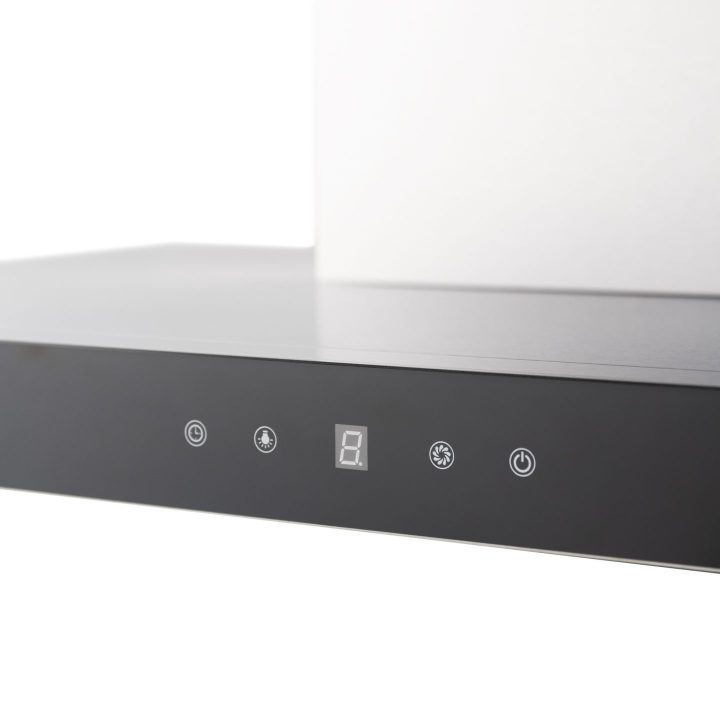This powerful 90cm cooker hood looks fantastic with its black glass front panel with touch controls, digital display, stainless steel extendable chimney and 2x energy saving LED spotlights that will light up your cooking area. The touch controls and digital display will give your kitchen a modern and stylish focal point and the square glass front is easy to clean as you don’t have to worry about your buttons getting clogged up with grease. This black cooker hood also features an auto shut off timer so you can leave the kitchen without worrying.