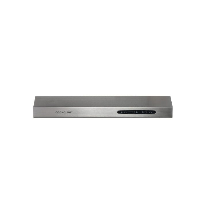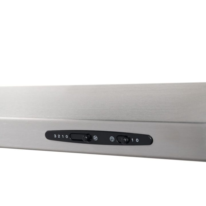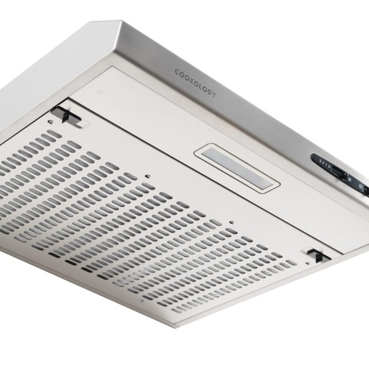 50cm Visor Cooker Hood in Stainless Steel – by Cookology. The VISOR500SS is versatile, attractive and practical. Finished in Beautiful Stainless Steel, this Extractor Fan is suitable for any kitchen, fitting in next to your other appliances and furniture, whilst providing light and helping to keep your kitchen free of smoke and smells. Installing this Cooker Hood also has its advantages as you can choose to recirculate the air using an Optional CF300 Carbon Filter Sheet that you cut to size (sold separately) or you can use the DK1M120 Ducting kit which connects to a hole in your wall for the best possible extraction rate (sold separately). When venting outside you switch a lever inside the Cooker hood that directs the air to the back of the appliance and simply take out the round metal cover for top venting. If you choose to recirculate the Cooker hood, you will need to simply alter the lever setting so that the air blows forward and out the vents at the front, top part of the hood. Using this Standard Extractor Fan is very simple thanks to the slider controls that operate the 3 speeds and the lights. Lastly, this Cooker Hood gets mounted on a Wall and can be fitted in between cupboards or directly on the wall itself with the Bracket provided.