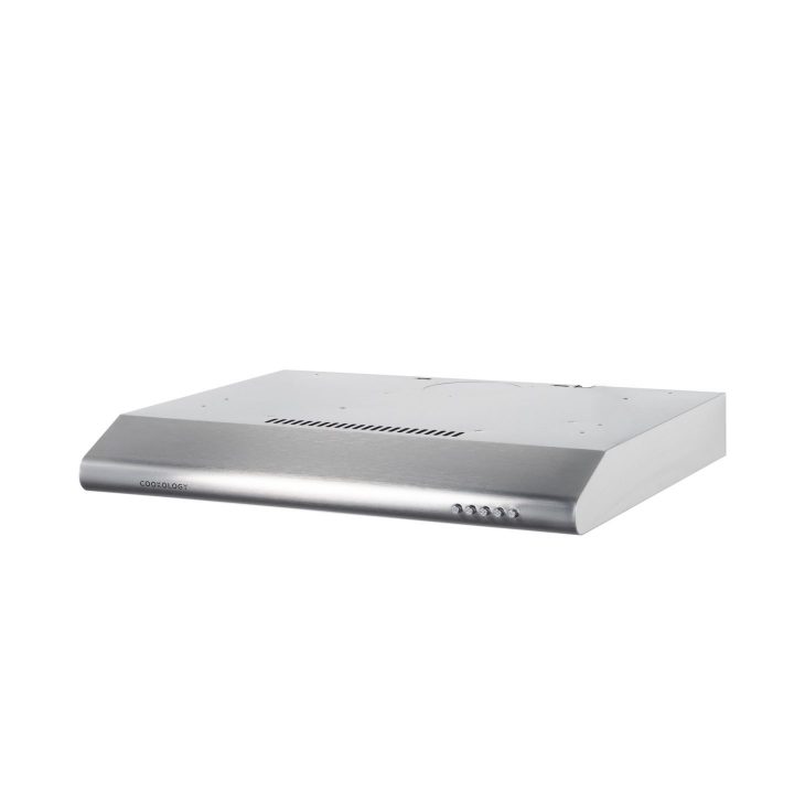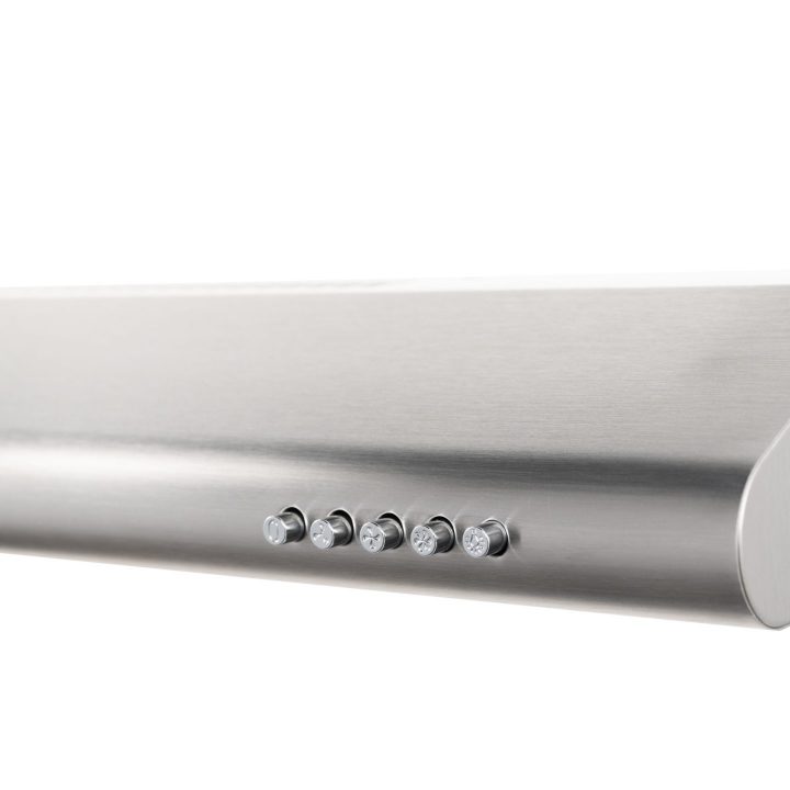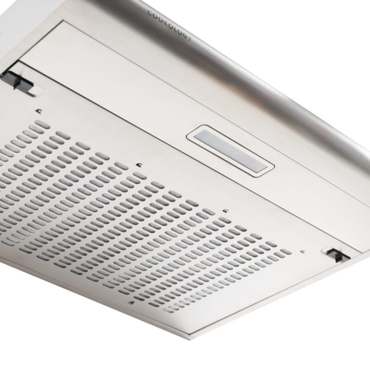 Cookology 60cm Visor Cooker Hood in Stainless Steel. If your kitchen seems a little tired, this stylish Stainless Steel Visor Cooker Hood can instantly lift your kitchen’s look and feel with its clean lines and simple design. Installing this Cooker Hood is super easy – as it can be mounted on the wall using the bracket provided, or fitted between or under cupboards. You can also choose if you want to recirculate the air using an Optional CF300 Carbon Filter Sheet that you cut to size (sold separately) or you can use the DK1M120 Ducting kit which connects to a hole in your wall for the best possible extraction rate (sold separately). When venting outside you switch a lever inside the Cooker hood that directs the air to the back of the appliance and simply take out the round metal cover for top venting. If you choose to recirculate the Cooker hood, you will need to simply alter the lever setting so that the air blows forward and out the vents at the front, top part of the hood. You get 1 x 28 Watt Incandescent lighting which helps improve visibility right where you need it in the kitchen and you get a choice of 3 speeds operated by simple push buttons.