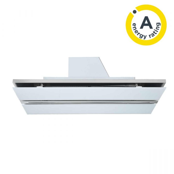 A Energy Rated 100cm Ceiling Island Cooker Hood – White Glass