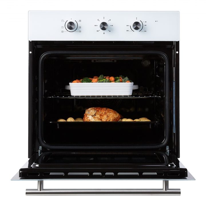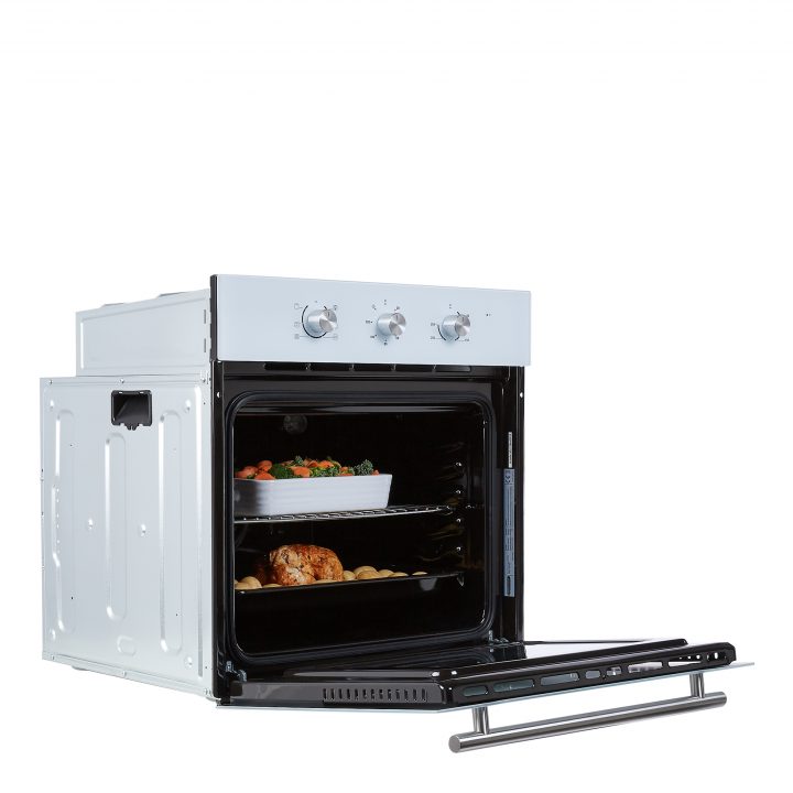 The white single oven gets installed into a single oven cavity with a 13A supply (plug not included) either at eye-level in a cabinet or under your kitchen counter.