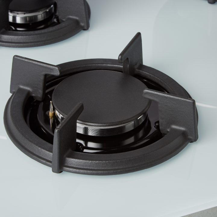 Gas on Glass Hob Features: Each of the 4 burners comes fitted with an FFD / FSD (flame failure device / flame supervision device) – this ensures that if an over boiling pan or a sudden gust of wind were to extinguish a flame, the gas would shut off automatically. Not only is this a legal requirement in certain buildings, its genuinely a life saver.