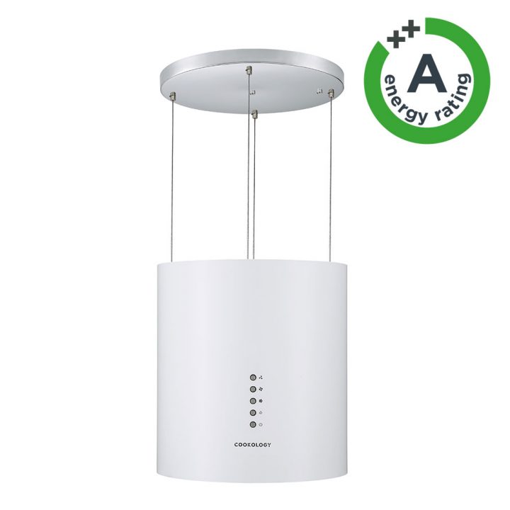 35cm White Hanging Cylinder Island Cooker Hood – Energy Rating A++