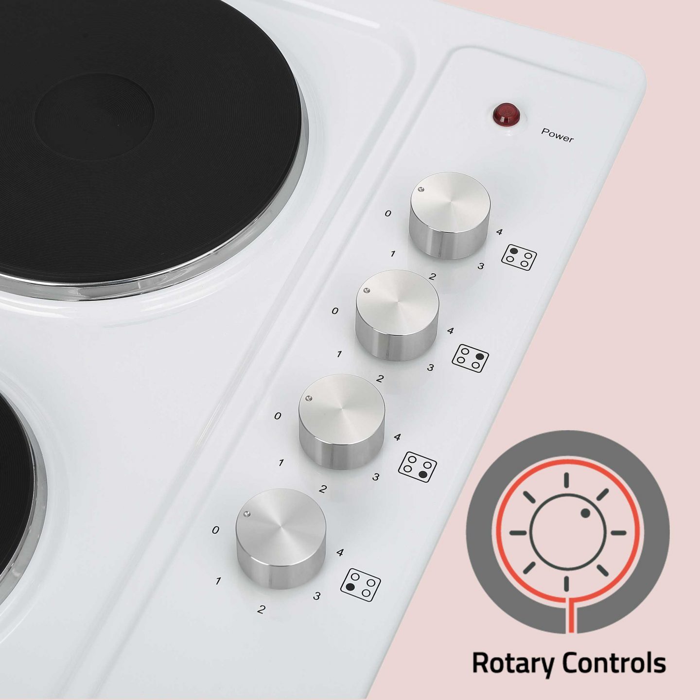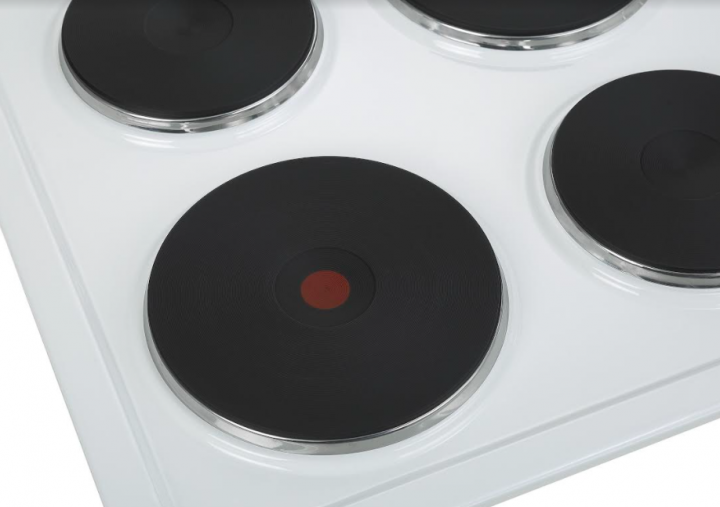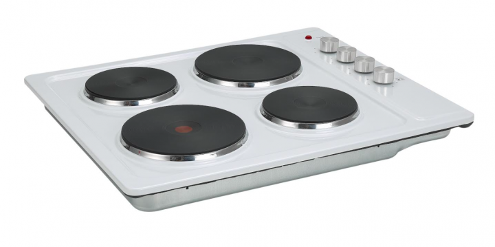 Cookology SEP601WH 60cm Built-in Solid Plate Electric Hotplate Hob in White If you’re looking to replace your old, solid plate hob with a new, beautiful one, then this 4 Zone, White Hob could be just the ticket. The SEP601WH is a Rotary Control Hob which means it is simple to use for all ages. This makes it ideal for Student Halls, Elderly people and everything in-between. There are no fancy buttons or finicky Touch Controls – Simply turn the dial and away you go! If you are used to Cooking with simple controls, this Hob will give you confidence because you know where you are with it. The SEP601WH is a standard size and requires a standard cut-out of 560mm by 490mm, this means that in most cases your electrician won’t have to resize your existing cavity. Finally, this Hob features a Red-Dot. This Hob Zone will heat up very quickly, ideal for when you are in a hurry.