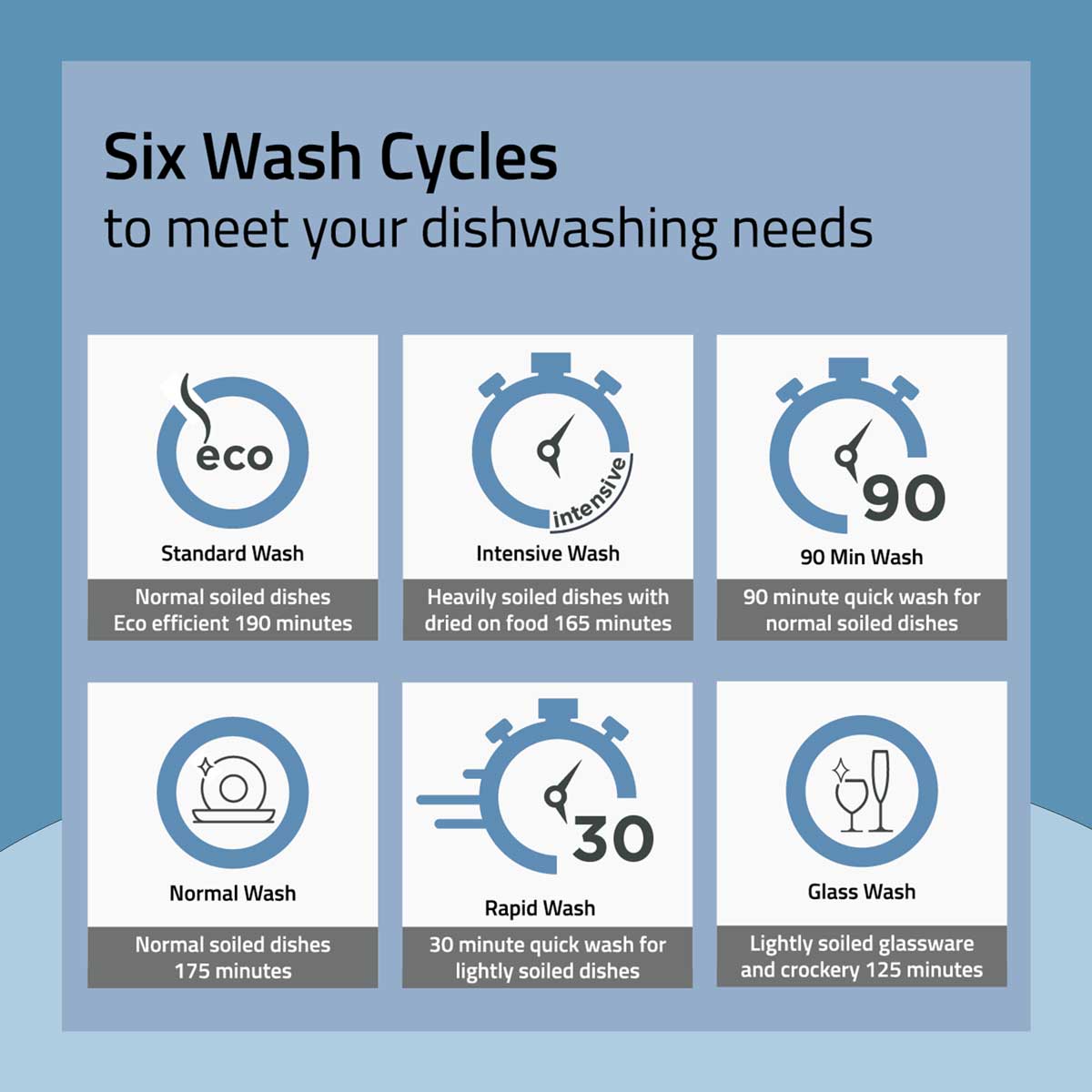 This dishwasher has many cycles which have been limited to a good duration of minutes, saving energy and saving time is a suitable option when it comes to cleaning your dirty dishes.