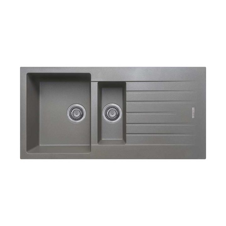 Arezzo Double Bowl Granite Composite Kitchen Sink – 1.5 Inset and Drainer – Grey
