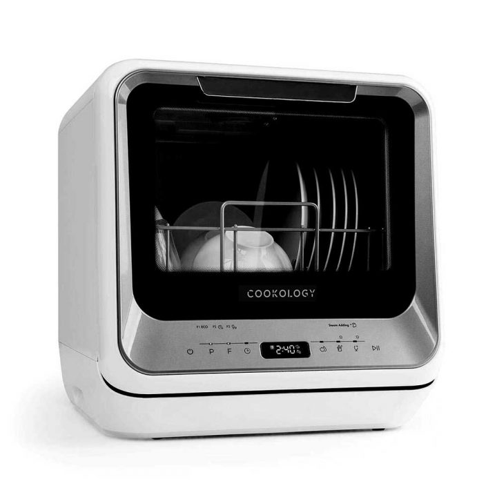 This compact dishwasher appliance has been designed by Cookology to be portable as you do not need to plumb it in. Simply pop the mini dishwasher on your countertop, fill it up with water, plug it into the power and point the waste hose down the sink.