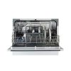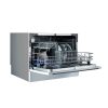 This silver table top dishwasher has space for 6 place settings, making it the perfect table top appliance for small households. It performs brilliantly, reaching up to 65°C, has 7 programmes to choose from including Eco and Glass Wash, and accepts salt and rinse aid like any other dishwasher. No need to worry about loud washing cycles either – this dishwasher runs quietly at a volume of only 49dB.