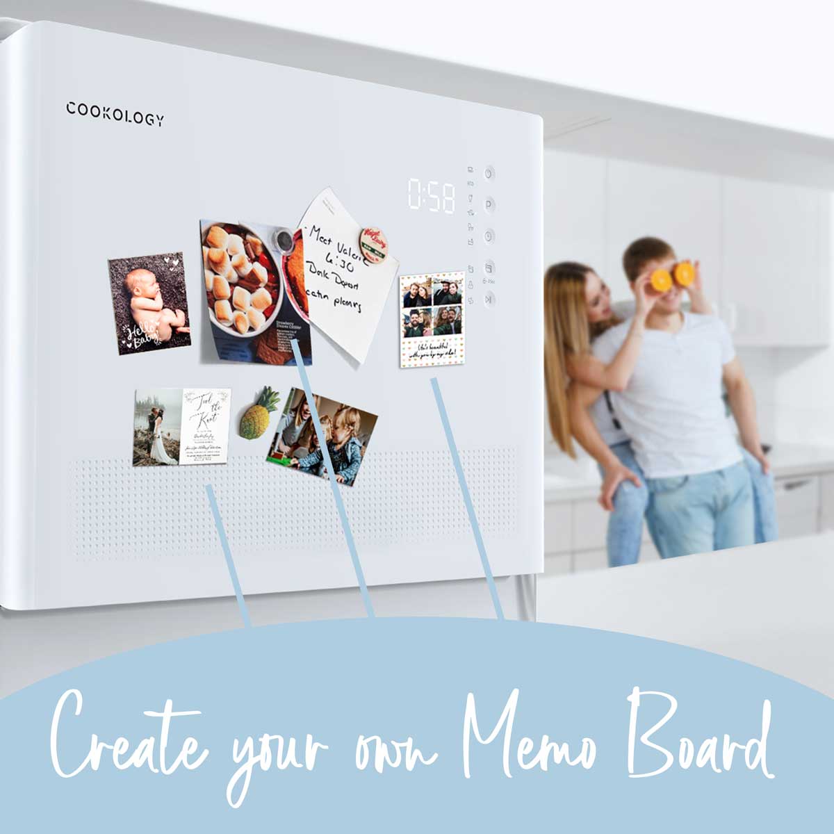 Cover the front of the dishwasher with your favourite photos or recipes. The flat front design makes it easy for you to pin and design your own memo board.