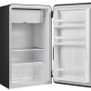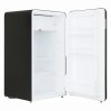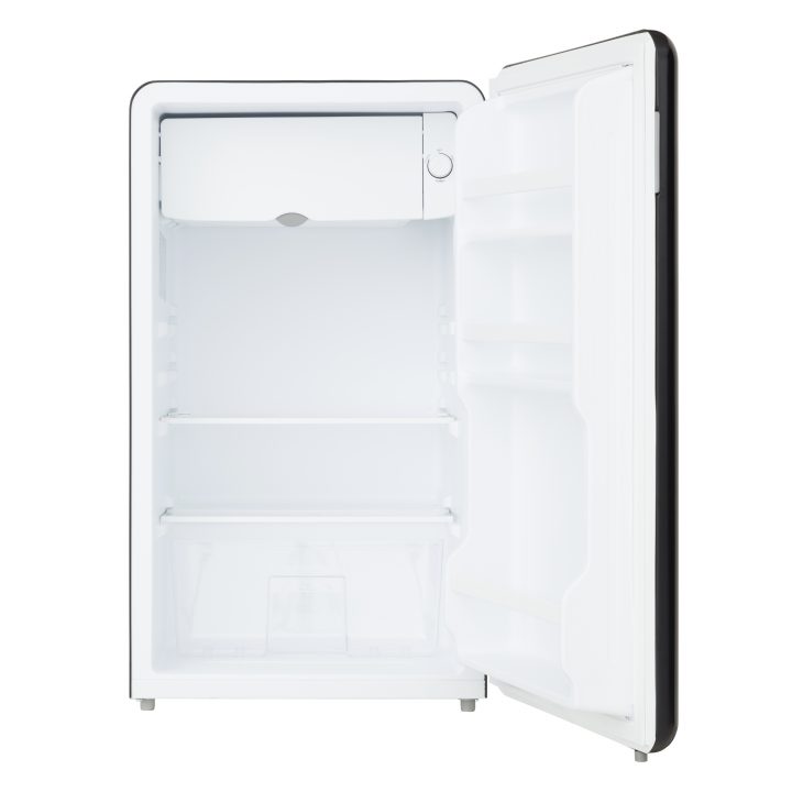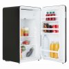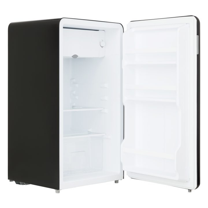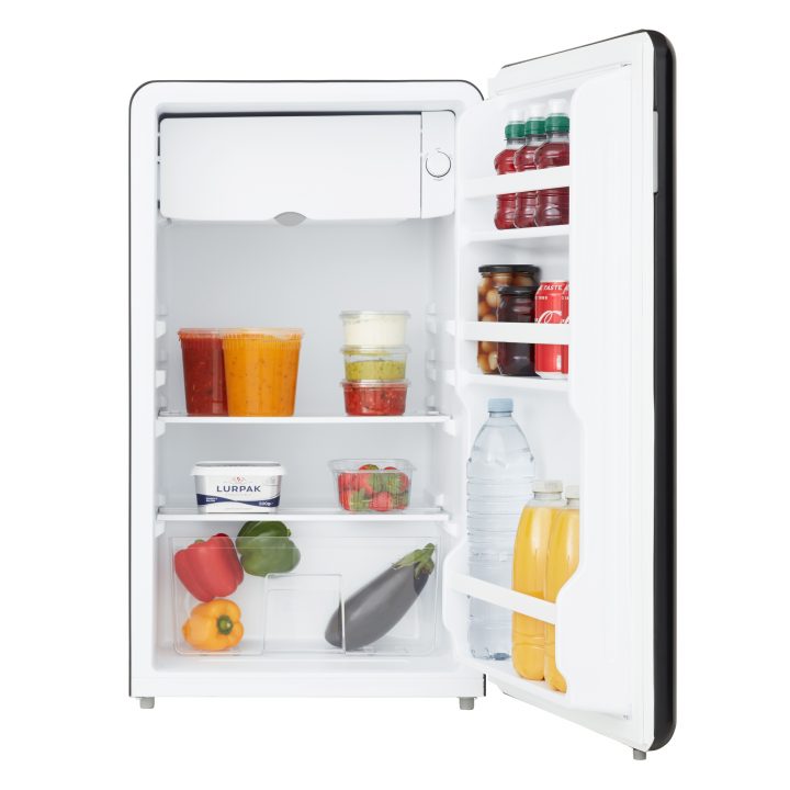 The black retro fridge brings the golden age of design to your kitchen with its sleek styling. This small retro fridge can be placed under-counter in the kitchen, or placed freestanding wherever to suit your needs. With 93 litres of capacity including a chiller zone, this retro fridge is perfect for everyday use.